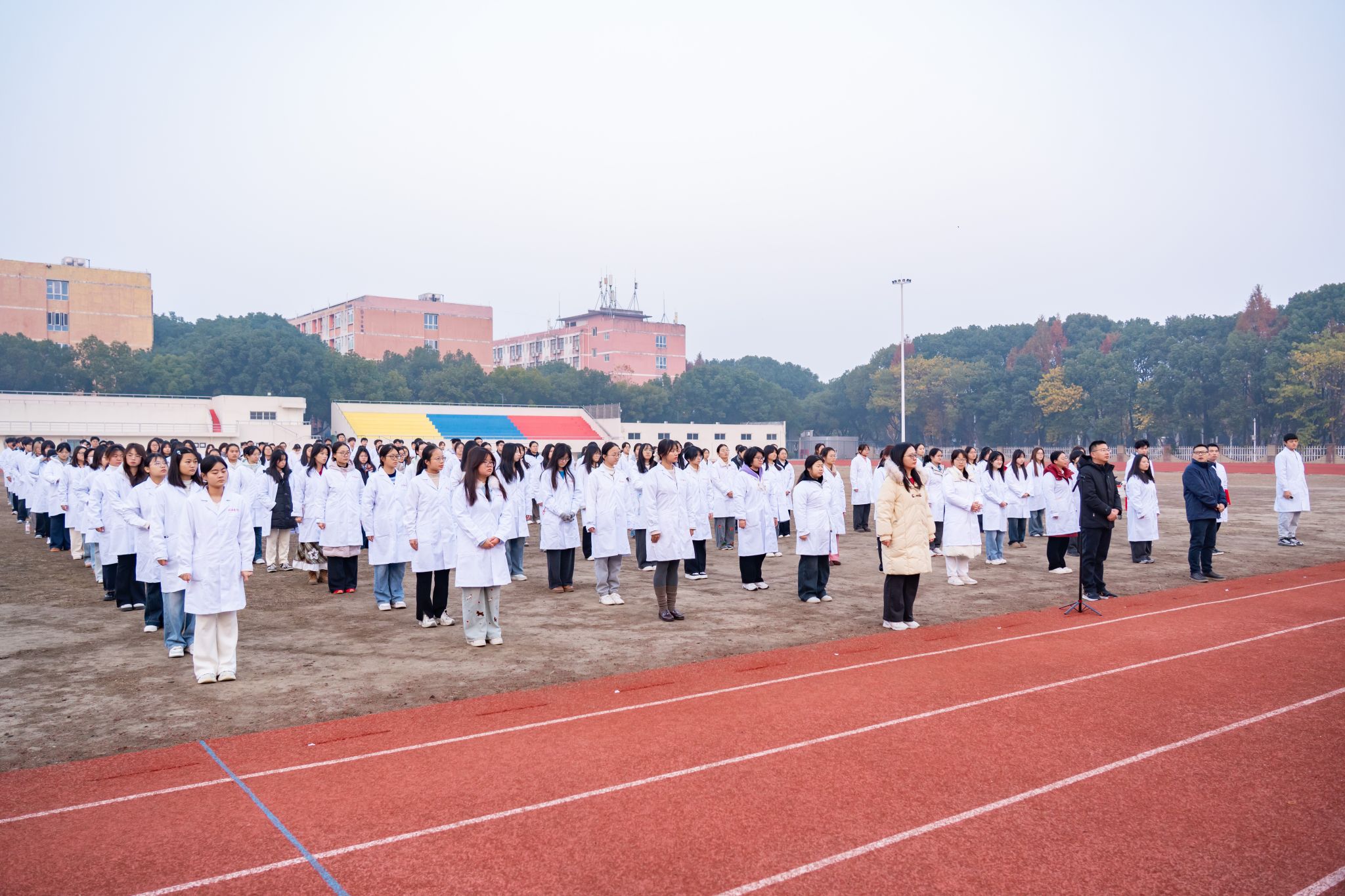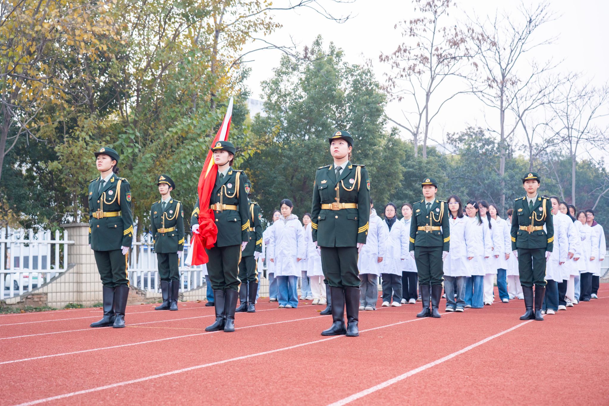 为深化爱国主义教育,强化思想引领,夯实育人阵地,12月8日清晨,tyc8722太阳集团在南区操场举行“弘文励初心 担当育新人”升国旗仪式暨“国旗下的思政课”活动。人文与管理公司党委副书记钱彬彬、各年级辅导员和2025级全体员工参加活动。
