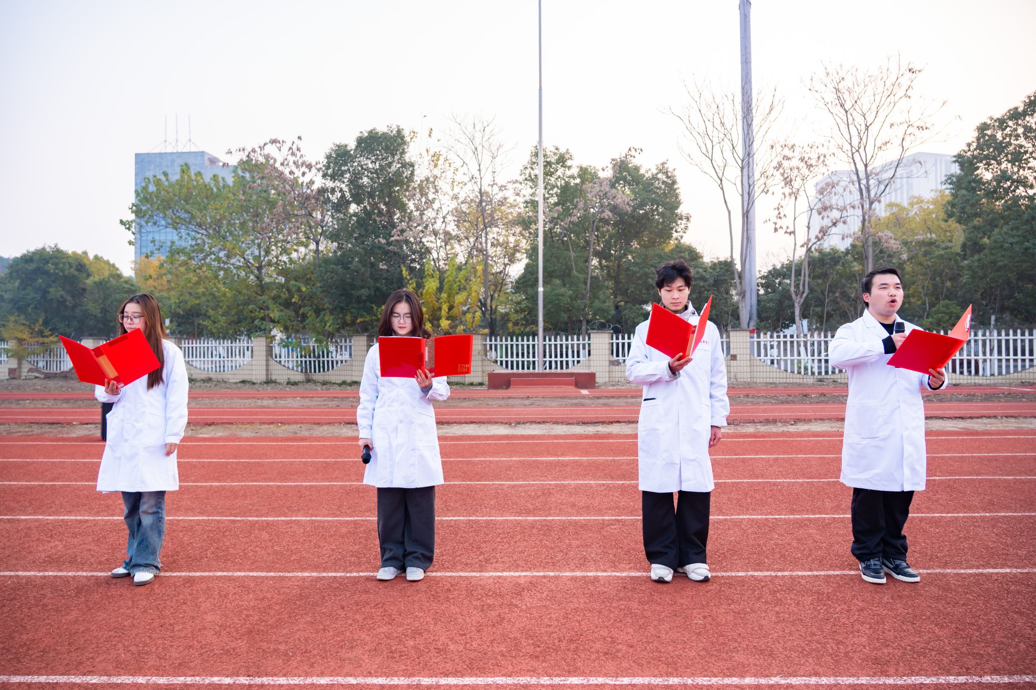 紧接着,员工代表深情朗诵《以青春之名,赴时代之约》,以激昂文字抒写报国志向。活动在悠扬校歌的合唱中圆满落幕,仪式庄重、环节紧凑,形成了一堂“行走的思政课”。