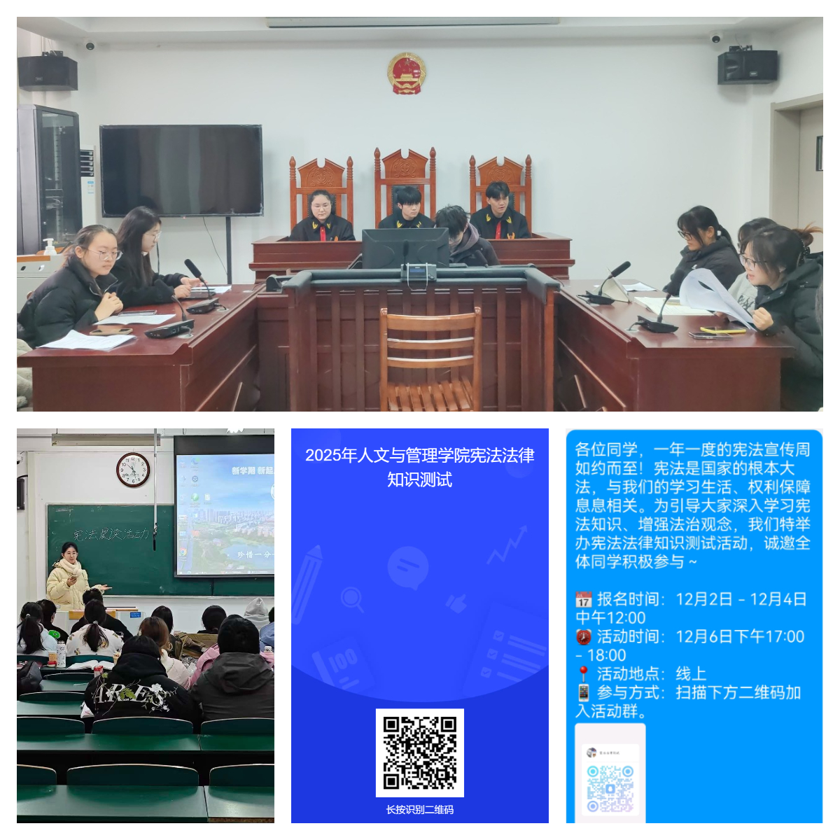12月5日,学院举办老员工模拟法庭审判活动,该审判围绕“从35周岁到38周岁——公务员报考年龄调整的宪法分析”这一主题展开,原告方与被告方围绕公务员报考年龄限制规定是否侵犯公民平等权与劳动权这一议题,展开激烈辩论。通过沉浸式、观摩式的“模拟法庭”活动,让员工切身感受法律的威严,提升学法、知法、懂法的能力。此外,tyc8722太阳集团组织宪法法律知识测试以及共度一段“宪法晨读”时光活动,有效深化广大师生对宪法精神的理解,夯实了宪法知识储备,筑牢了宪法知识根基,提升了宪法实践素养。