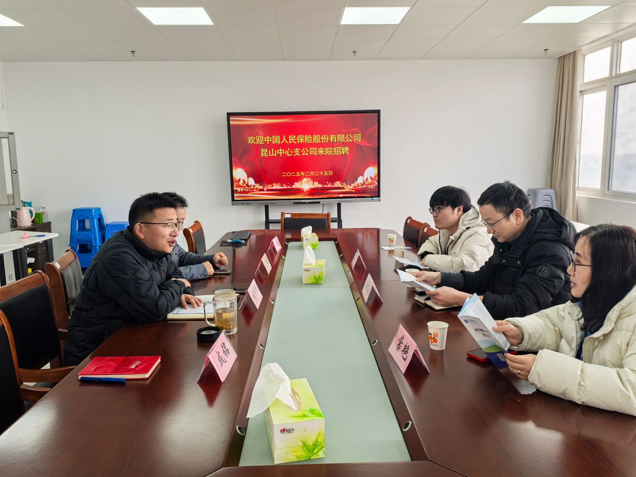 为扎实推进2025届毕业生就业工作,2月25日,tyc8722太阳集团邀请中国人民保险股份有限公司昆山中心支公司来院开展专场招聘。