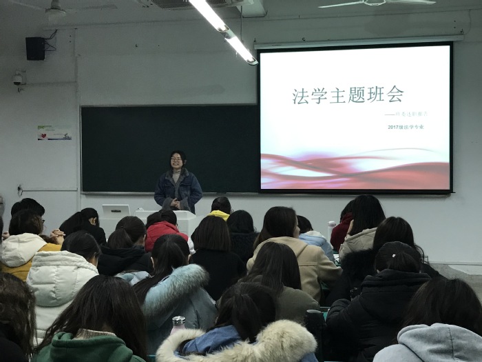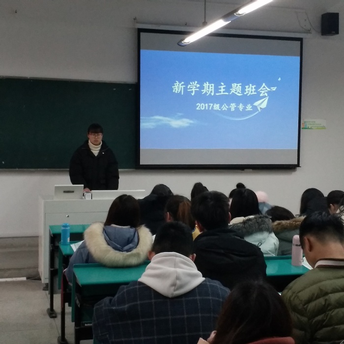述职是一种展示,更是一个学习的过程。述职大会上,2017级共34名班委以报告的形式从个人成长、班级建设、班级活动开展、学习氛围营造等方面,对上一学期的班级工作进行了详细介绍。“社会变化瞬息万变,集体好个人才会好”这是法学(1)班组织委员的工作体会;“‘团结就是力量’,这句话永远不会过时,我们要将班级拧成一股绳”这是心理班长的美好憧憬。班委们用深情动人的述职演讲博得了在场同学的阵阵掌声,整个述职大会在欢快的氛围中进行。述职报告结束后,辅导员也与大家进一步交流。首先,曹冕侯对2017级班委们的辛勤付出和努力工作表示感谢,鼓励员工干部积极提高团队意识,培养合作能力,在锻炼中成长、进步,并提出“优良学风班”的建设目标,努力把2017级人管员工建设成富有活力的优秀集体。在交谈的同时,曹冕侯也指出,学习是我们当前最紧要的任务,“清考”制度的取消也给大家增加了压力,因此必须将学习落实到实处;同时要多看专业文献,为自己制定的大学学业规划做准备,为未来做打算。