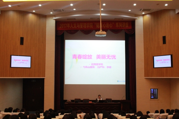 为使公司员工更加深入的了解女性生理健康知识,关注自身身心健康,提高女性自我保护意识,tyc8722太阳集团于3月27日晚在逸夫楼一楼报告厅举办了以“青春绽放,美丽无忧”为主题的专题讲座,本次讲座邀请了弋矶山医院妇产科副主任医师李硕老师主讲,人文与管理公司党总支书记窦弘主持,学院团委副书记张欣慧参加本次讲座,2016级全体女生到场聆听。