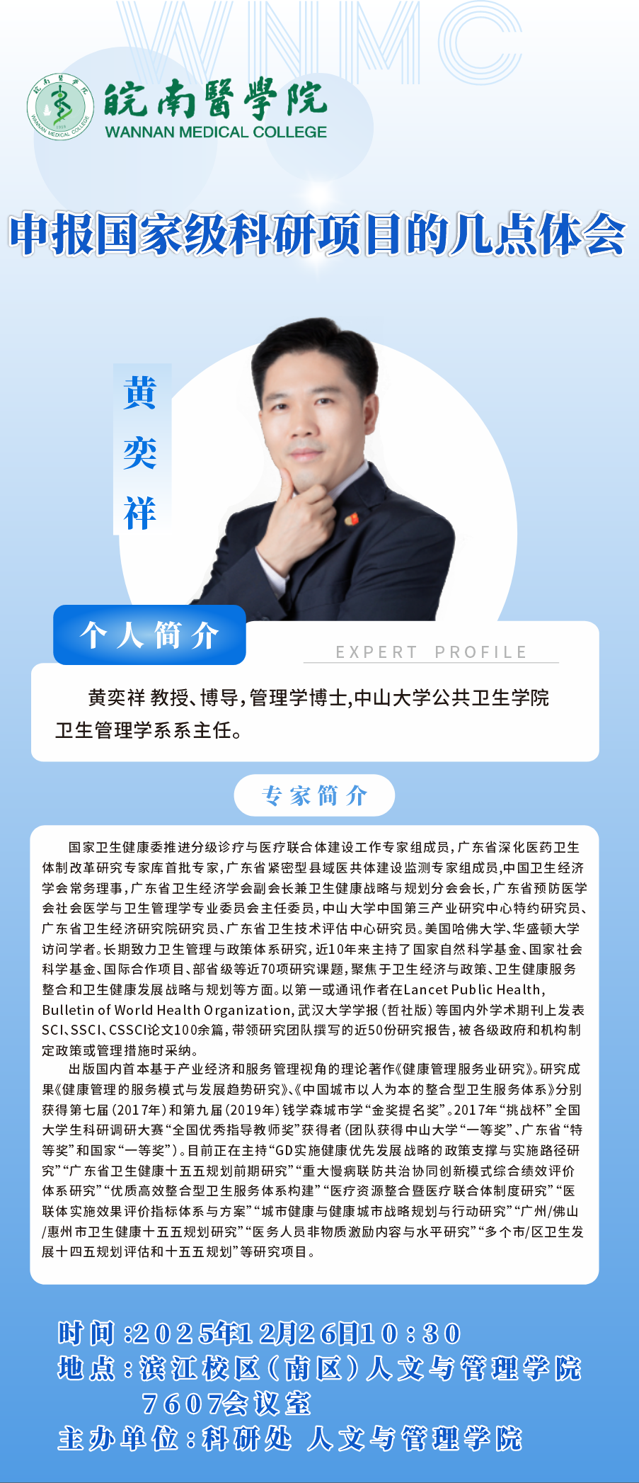 讲座:申报国家级科研项目的几点体会